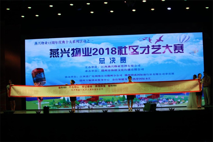 2018年9月2日晚上,江西燕興物業(yè)管理有限公司第五屆社區(qū)才藝大賽總決賽,在贛州市章貢區(qū)奧林匹克廣場虔州大舞臺隆重舉行。贛州市中小企業(yè)管理局副局長卓秋生,贛州市章貢區(qū)民營企業(yè)管理局局長鐘群,贛州市中小企業(yè)協(xié)會、章貢區(qū)民營企業(yè)聯(lián)合會會長歐陽宇俊等領(lǐng)導(dǎo)嘉賓蒞臨指導(dǎo),燕興物業(yè)董事長劉燕,總經(jīng)理劉南斗,副董事長陽敏,副總經(jīng)理徐桂香、張衛(wèi)東等公司領(lǐng)導(dǎo),以及公司員工、小區(qū)業(yè)主、市民等近千人在場觀看。