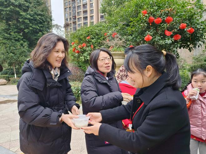 吃一碗元宵,盼一年團圓。元宵節吃湯圓,包含著思念親人、渴望團圓的寓意,也寄托對未來生活的美好愿望。盛合.公園壹號小區、帝景豪園小區、怡景嘉苑小區開展了送湯圓活動,物業工作人員一早準備了熱氣騰騰的湯圓,為業主家人們送上甜甜的祝福。將濃濃的祝福裹進餡兒里,包進湯圓里,送到手里,溫暖到心里。