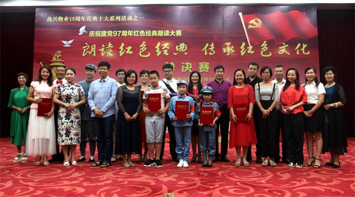 2018年9月1日晚上,“朗讀紅色經典 傳承紅色文化”江西燕興物業管理有限公司慶祝建黨97周年紅色經典朗讀大賽總決賽,在贛南賓館會堂隆重舉行,12個紅色經典節目從50個預賽節目中脫穎而出,同臺競技,角逐... 2024-07-25