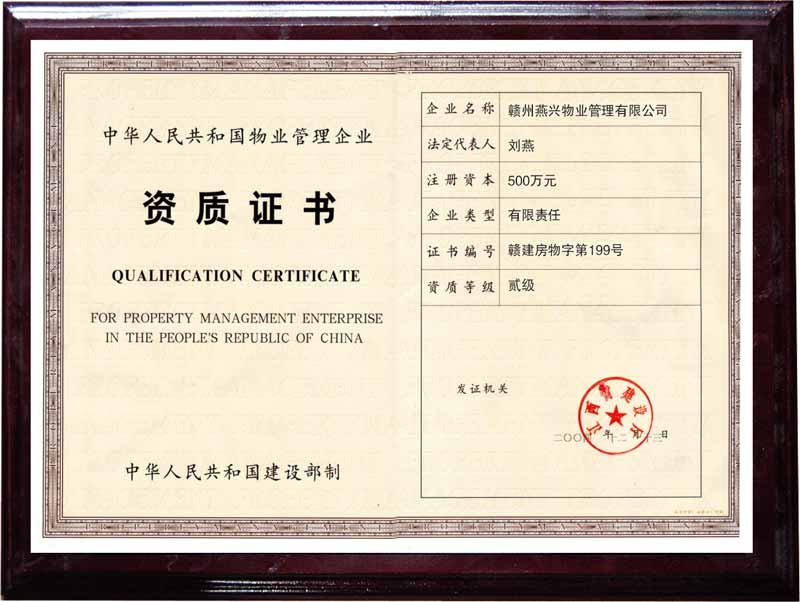 中華人民共和國物業(yè)管理企業(yè)資質(zhì)證書
