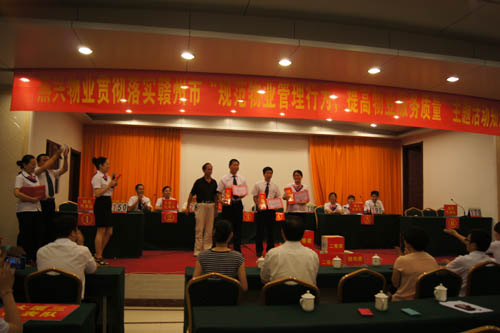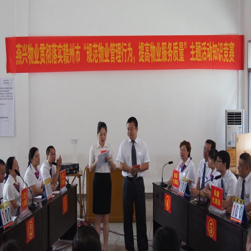 為全面貫徹落實《贛州市開展“規范物業管理行為,提高物業服務質量”主題活動實施方案》的通知精神,提高員工物業管理專業知識和業務能力,在員工中掀起“比、學、趕、幫、超”的學習熱潮,2013年6月8日下午14:20分,燕興物業在贛州賓館二樓會議廳舉辦了貫徹落實贛州市“規范物業管理行為,提高物業服務質量”主題活動的知識競賽。