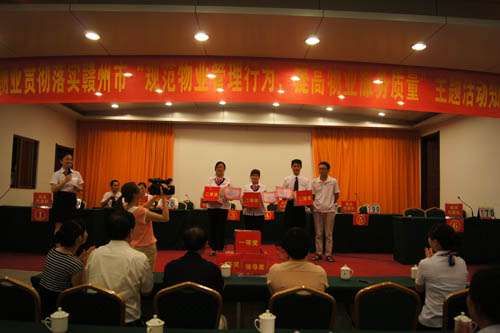 參賽隊伍以城東、城南、城北、城西、贛縣、南康、信豐項目部為單位組成7支代表隊,拔款單位組成5支代表隊,共組成12支代表隊。競賽分為初賽和決賽兩部分,初賽采用從12支代表隊中決出6支優勝隊進入決賽。經過緊張的初賽,進入決賽的隊伍分別是城東、城西、城北、贛縣、大廈二、大廈三六支代表隊。經過必答題、搶答題、風險題三個環節的激烈角逐,最后大廈二隊以總分230分奪得桂冠。城北隊、城東隊分別獲得第二名、第三名。市房管局、市物協和公司領導分別為獲獎隊伍頒發了榮譽證書及獎品。