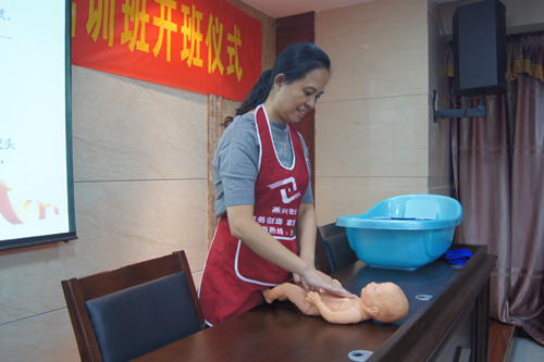 上圖:學員在做模擬嬰幼兒起居護理實操