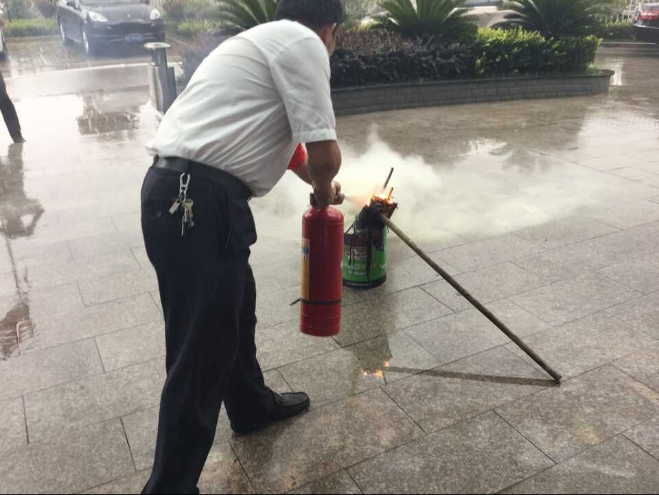 為鞏固演習成果,提升消防技能,在演習結束后,消防干警還組織物業公司人員進行了滅火器滅油盆火演練。
