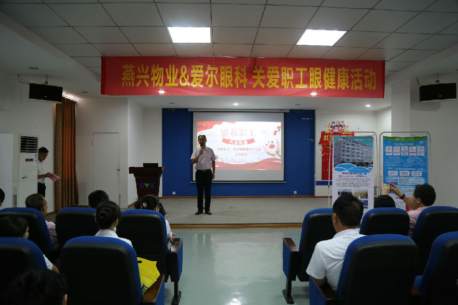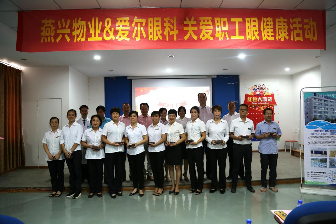 2018年8月21日上午,由江西燕興物業(yè)管理有限公司和贛州愛(ài)爾眼科醫(yī)院共同舉辦的“關(guān)愛(ài)職工眼健康”活動(dòng)啟動(dòng)儀式,在贛州愛(ài)爾眼科醫(yī)院會(huì)議室舉行。此次活動(dòng),受到雙方單位領(lǐng)導(dǎo)的重視和職工們的歡迎與支持,燕興物業(yè)有近40名職工參加了啟動(dòng)儀式。