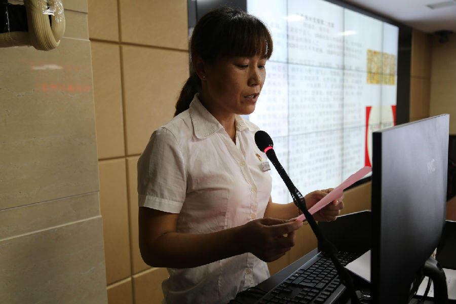 第二黨支部黨員蔡華英朗讀了王孝錫寫(xiě)給父母的訣別信