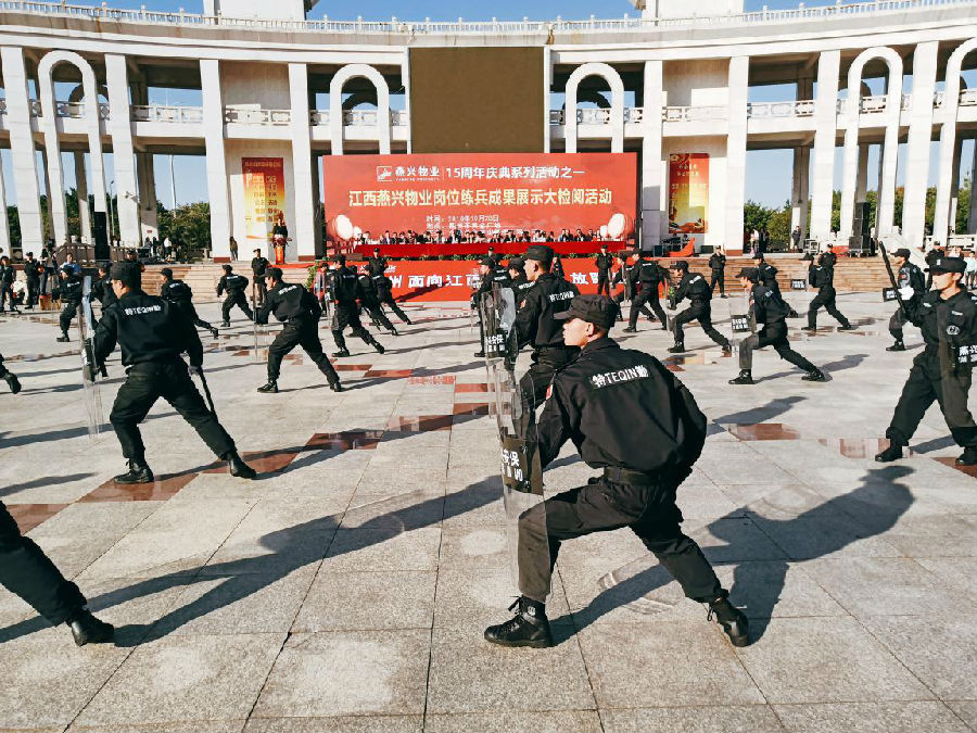 2018年10月28日,江西燕興物業管理有限公司在贛州市黃金廣場隆重舉行崗位練兵成果展示大演練活動。參檢員工以嚴整的隊姿和精湛的技能展示,匯報了崗位練兵的成果,展示了強大的綜合素質和良好的精神風貌。相關主管部門、行業協會和兄弟公司領導、業主代表等應邀參加活動。