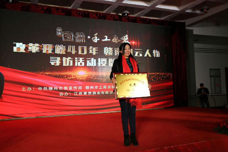 由中共贛州市委宣傳部、贛州市工商聯(lián)、贛州廣播電視臺(tái)主辦,江西章貢酒業(yè)有限責(zé)任公司協(xié)辦的“改革開放四十年贛南風(fēng)云人物”尋訪活動(dòng)授牌儀式,3月15日在章貢酒業(yè)公司隆重舉行。會(huì)上,中共贛州市委常委、宣傳部部長(zhǎng)彭業(yè)明,贛州市政協(xié)副主席、工商聯(lián)會(huì)長(zhǎng)華旭明為濃縮著贛南改革開放的輝煌成就的二十二位“改革開放四十年贛南風(fēng)云人物” 授牌。江西燕興物業(yè)管理有限公司黨委書記、董事長(zhǎng)劉燕獲此殊榮并出席授牌儀式。