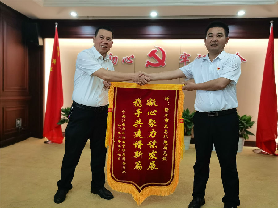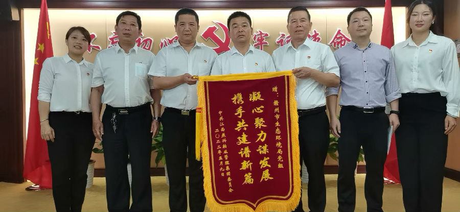 生態環境局黨組成員鐘副局長接過錦旗,說到:“高質量黨建引領企業高質量發展,我們是共建單位也是業務合作單位,攜手抓好黨建共建,力爭在市“三大戰略、八大行動”中貢獻更大力量,爭創第一等成績向黨的二十大獻禮”。