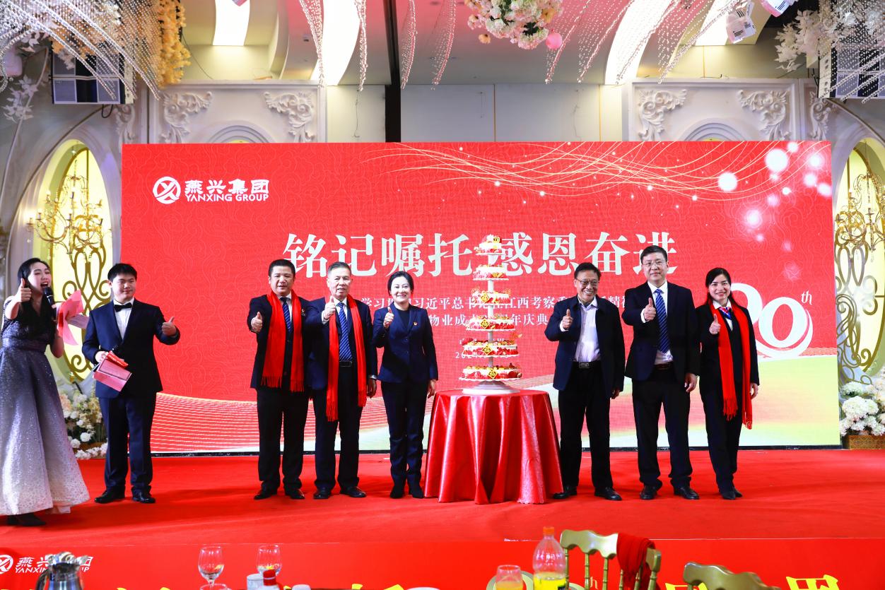 燕興集團黨委書記、董事長劉燕攜公司高層向到場的各位領導、嘉賓及員工代表們祝酒,慶祝燕興物業年成立二十周年,祝福燕興集團的明天會更好!
