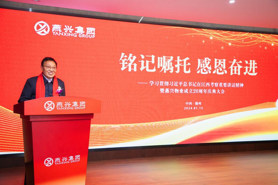 燕興集團(tuán)黨委副書(shū)記、副總裁劉南斗發(fā)表大會(huì)致辭。他在致辭中表示,在全省上下學(xué)習(xí)貫徹習(xí)近平總書(shū)記在江西考察重要講話(huà)精神的熱潮中,燕興物業(yè)迎來(lái)了二十華誕的歡慶日子。二十年來(lái),燕興物業(yè)在市委、市政府的正確領(lǐng)導(dǎo)下,在上級(jí)主管部門(mén)和行業(yè)協(xié)會(huì)及社會(huì)各界的大力支持幫助下,燕興物業(yè)在社會(huì)化、市場(chǎng)化、專(zhuān)業(yè)化的道路上得到了持續(xù)、健康地發(fā)展,這是我們社會(huì)各界共同努力的結(jié)果,也是對(duì)燕興人二十年辛勤付出的最好回報(bào)!他對(duì)蒞臨大會(huì)的領(lǐng)導(dǎo)、嘉賓、業(yè)界同仁表示熱烈的歡迎和衷心感謝!