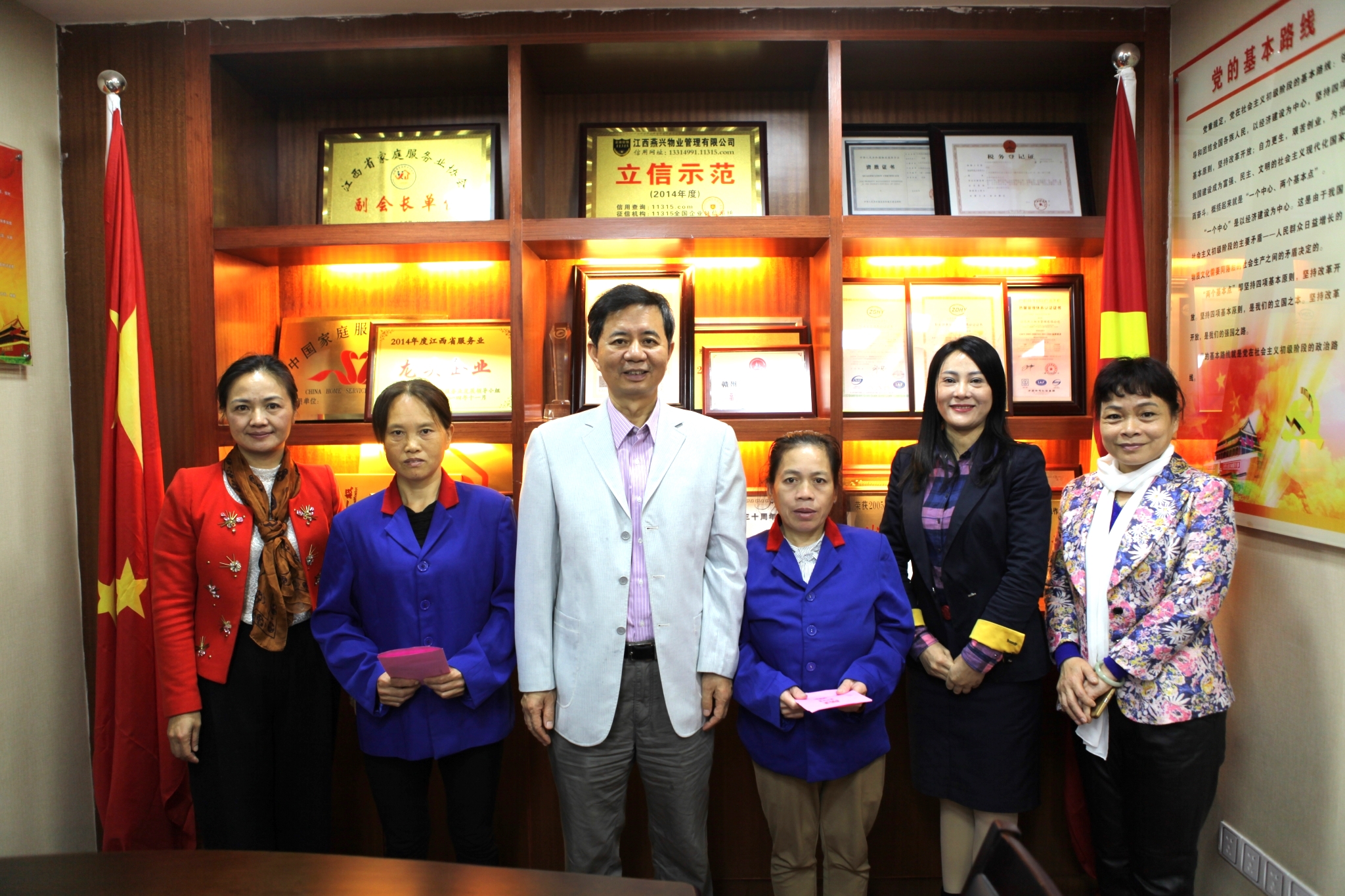 人大領導與劉燕代表合影 12月6日下午,贛州市章貢區人大常委會主任劉銘忠、市人大常委會選任聯主任賴景春領導一行到贛州市商會大廈走訪了江西燕興物業管理有... 2016-12-07