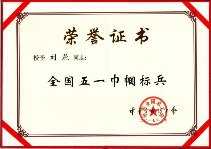 榮譽證書 與時代同行,展巾幗風采。3月6日,江西省總工會在南昌舉行紀念“三八”國際婦女節107周年暨全省先進女職工集體和個人表彰大會,隆重表彰了9個“全國五一巾幗標兵崗”、9個... 2017-03-09