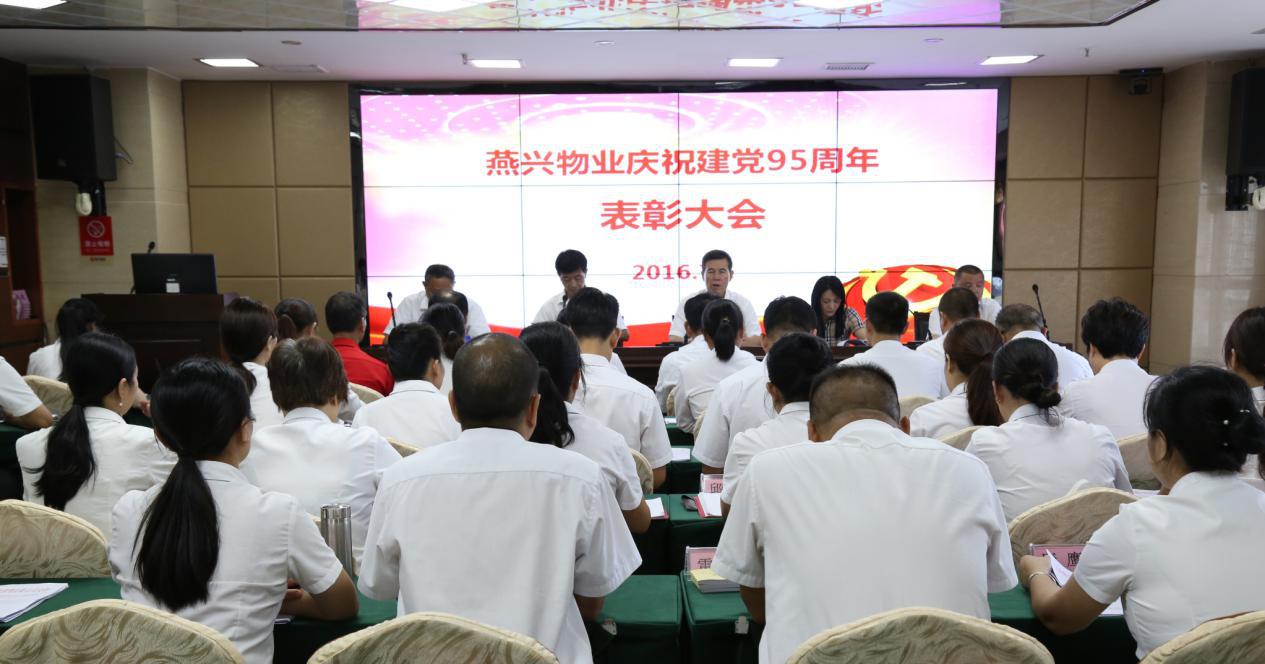 燕興物業慶祝建黨95周年表彰大會大會現場參會黨員代表2016年7月1日,江西燕興物業慶祝中國共產黨成立九十五周年表彰大會在公司會議中心舉行。公司董事長劉燕、黨支部書記劉南斗、公司全體黨員及中層以上管理干... 2016-07-07