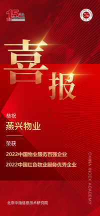喜報燕興物業榮獲中國物業服務百強企業TOP482022中國紅色物業服務優秀企業特此喜報,再創佳績2022年4月26日,由北京中指信息技術研究院主辦,北京中指信息技術研究院中國房地產TOP10研究組、中國... 2022-04-27