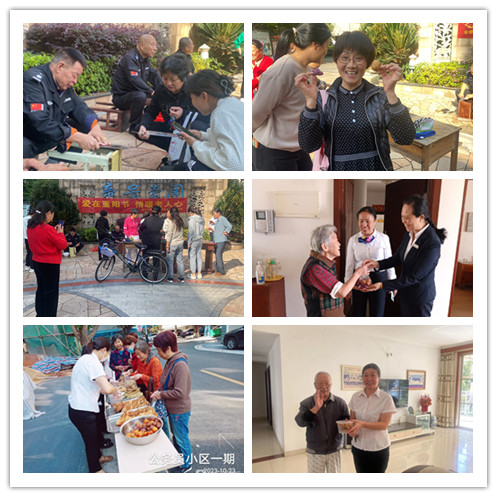 10月23日上午,公務(wù)員小區(qū)、帝景豪園小區(qū)開展“愛在重陽節(jié) 情暖老人心”重陽節(jié)活動,活動中邀請業(yè)主們品嘗美食芋包子、勺子米果、蔥條等,還開展了免費(fèi)的磨刀、理發(fā)等便民服務(wù)活動。針對行動不便的老人,物業(yè)中心的工作人員上門給他們送愛心米果,讓老人感受到物業(yè)節(jié)日的關(guān)懷和溫暖。